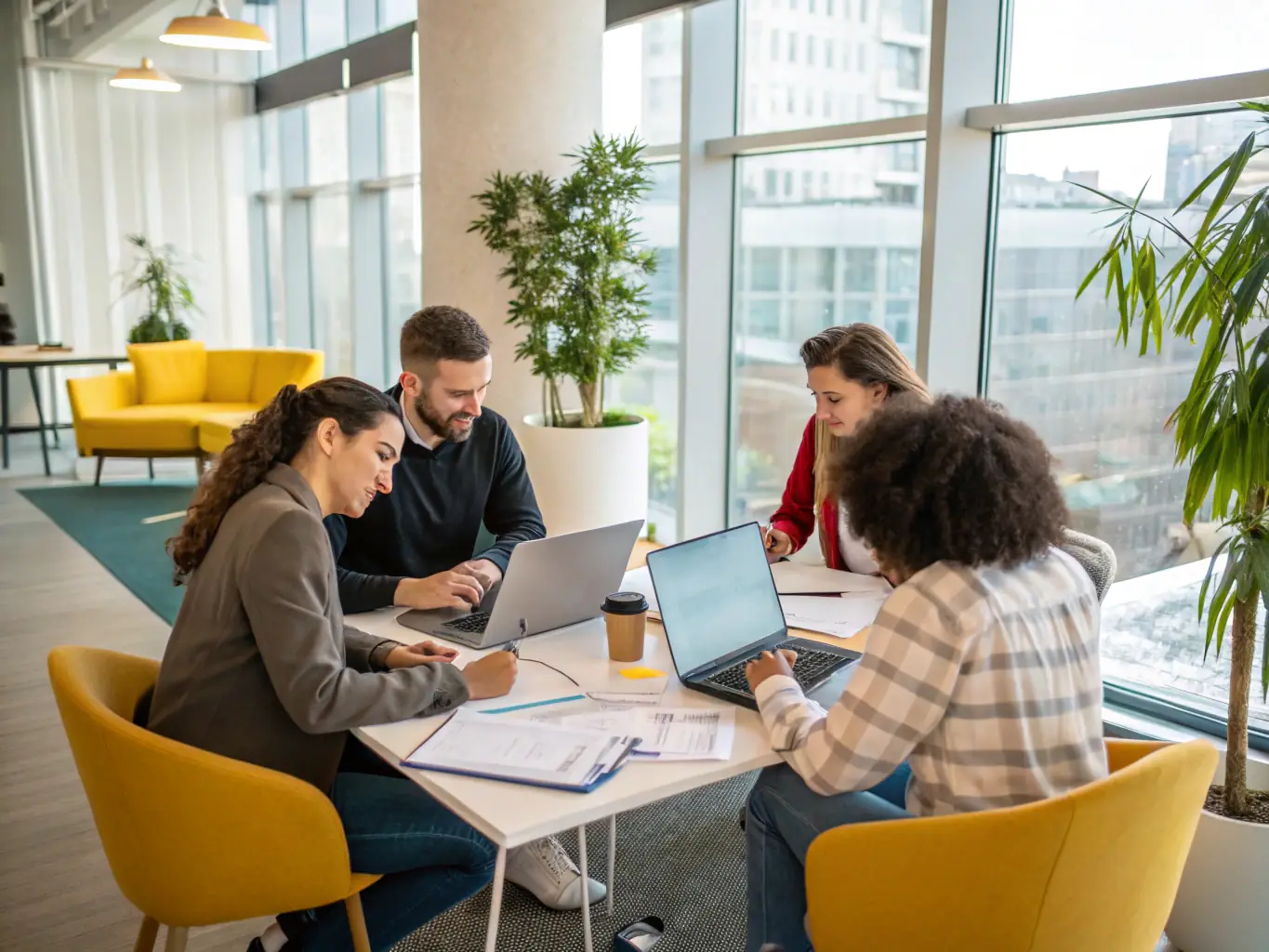 Comprehensive shots of modern workspaces and team dynamics, showcasing professionalism and corporate branding.